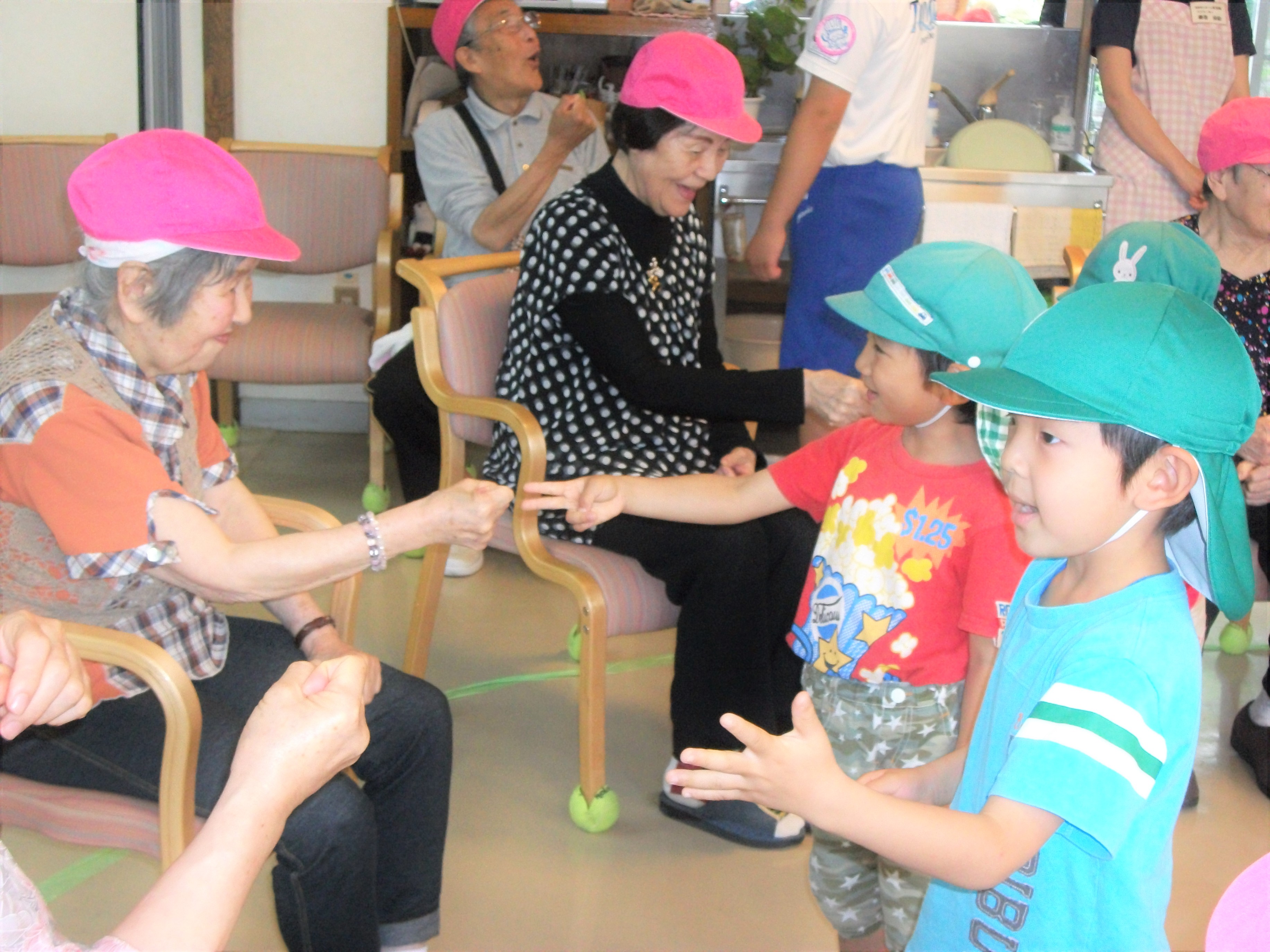 お年寄りを敬愛する心や社会的弱者の方たちを思いやる優しい心を育んで欲しいと願い、併設養護老人ホームとの交流行事を毎月実施しています。